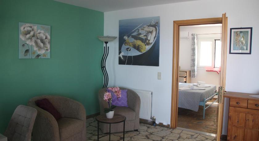 A beautiful quiet place with breathtaking sunsets and beautiful views from the terrace to the sea. Spacious house and large terrace. Perfect cleaning service. Friendly landlady. Gifts. Plenty of tavernas with good food nearby.