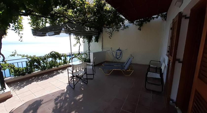 Very nice place on a cliff with a large terrace facing the sea, situated right between the old town and the beach, both can be reached within 5 minutes walk. The owner is very friendly and hospitable. Rooms are equipped with everything you need, large refrigerator, water boiler and kitchenware outside of the room are to be shared with other guests on each floor. The terrace on the lower floor is equipped with sun chairs, regular chairs, tables, sun shades, clotheshorse, and nicely decorated with plants (rooms on the upper floor have smaller, individual balconies).