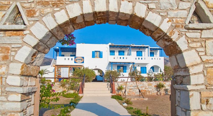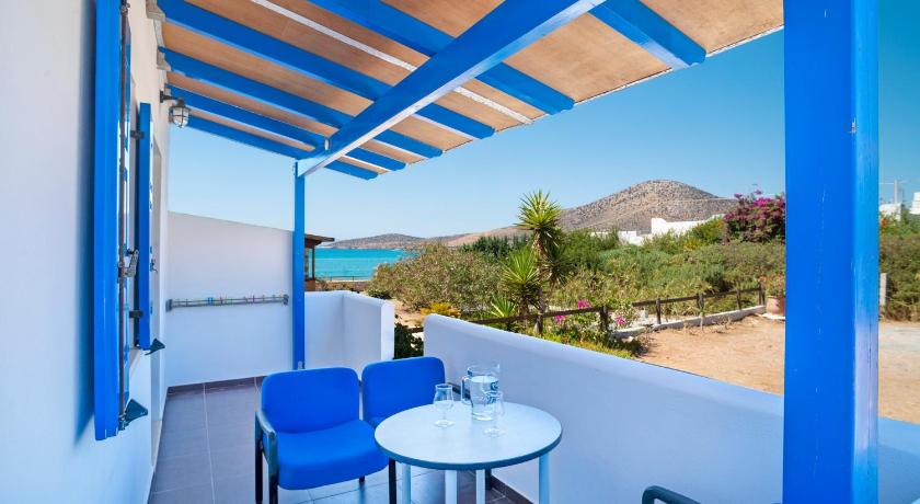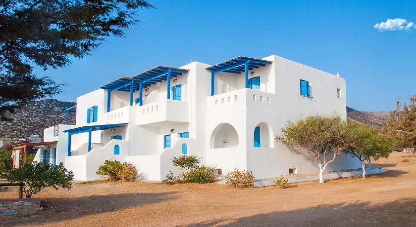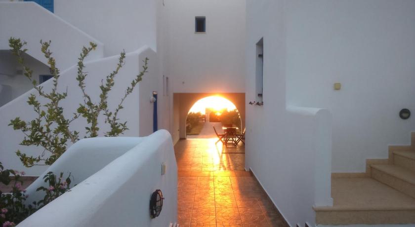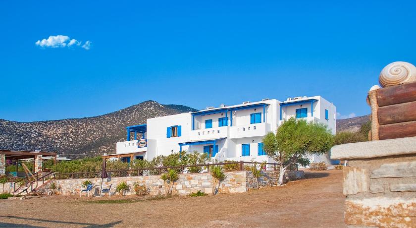 Very nice property, clean and modern and well equipped. Big garden. Great view, next to a great beach. The owners are very nice Greek family. It is perfect for a relaxing time away from the crowd. There are restaurants next door and a handy shop market in the property. You will need a car to room around the island.