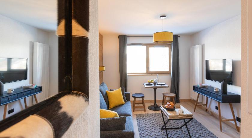 Brand-new apartments, everything is clean and fresh, well-designed and well-equipped for a long stay. Great location next to the forest with a scenic view on other side. Very helpful administrators. Nice indoor spa and swimming pool area. Secure parking garage and even bike storage. And the EV charger at outdoor parking. 500m (downhill) to the cable car, shops and cafes.