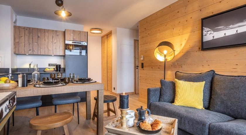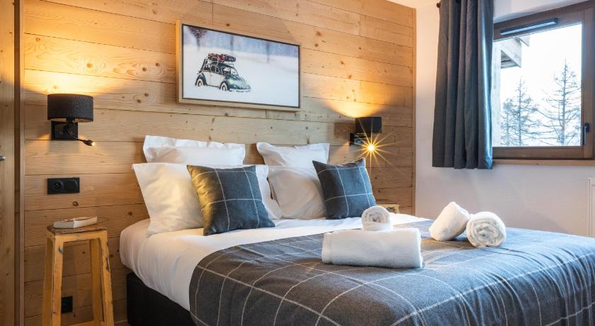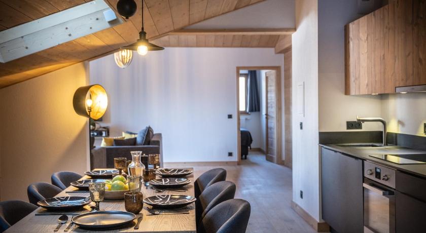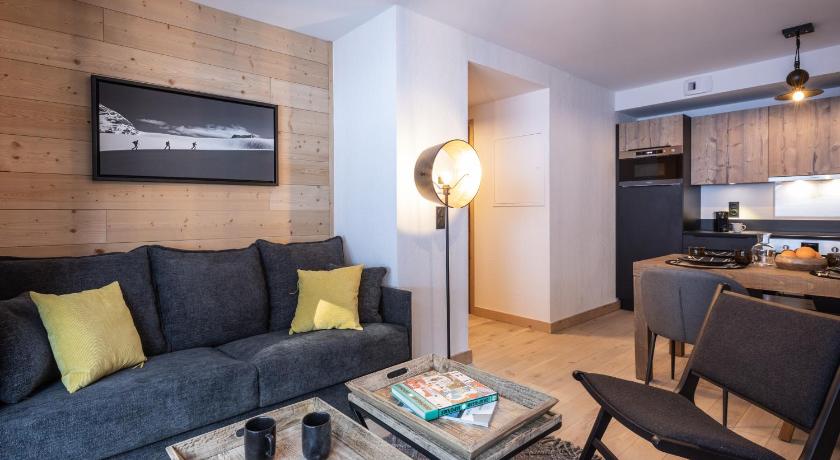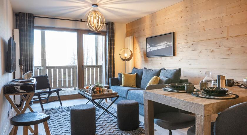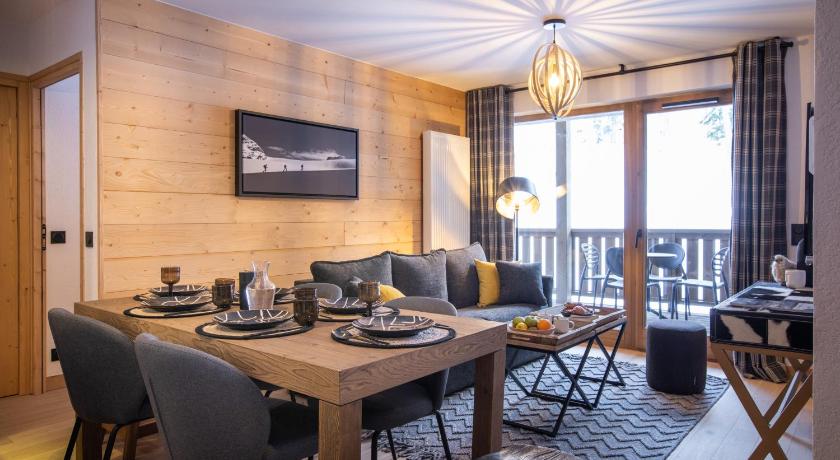 Very family friendly hotel. I really appreciated that, despite a lack of proper snow at this altitude, we could arrive and leave on skis at / from the hotel. Cosy room with everything you needed including washing machine, microwave, oven etc. You could arrange to have a baguette delivered each morning to the hotel. Nice small resort with cosy houses. Whole La Plagne - Les arcs domain is one of the best ski areas.
