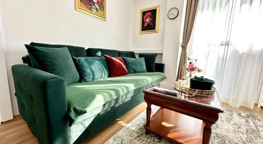 I loved the view. The studio is located very close to touristic attractions so you can enjoy a meal in the citadel with a 5 minute walk. Many restaurants, coffee shops and grocery stores in the area. There's paid parking across the street with 7.88 RON for the whole day. Although it's right next to a busy road the noise was not a problem at all. It was barely noticeable. The studio has everything you need. Lovely bathroom with shower, white slippers, towels, coffee machine (with coffee pods) , bottled water, tv, wifi, a comfy double bed and an extendable sofa that turns into a double bed as well. The bedroom has its own heating system and air conditioning unit. There are enough blankets and bedding to use both the bed and sofa or to have a cozy night watching tv. I really loved how clean it was and how tasteful the decorations were. It just makes you feel at home. I would love to stay at this studio again in the future!