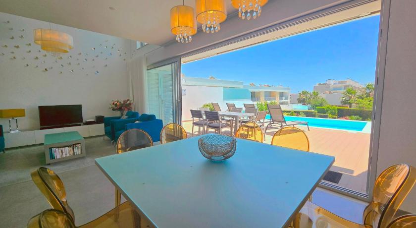 The villa was ideal for our stay, it was spacious and modern with local amenities all nearby. The patio/pool areas were great for lounging in the day and have sun until about 5pm when we stayed in June. We were welcomed on arrival with some necessities and also an additional gift which was appreciated. Kitchen is very well equipped and has a large fridge/freezer. Large supermarket is within a 10 minute walk of the villa. The Ping pong table was also great for entertainment in the day.