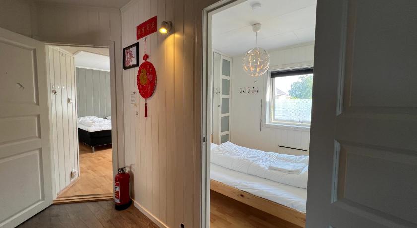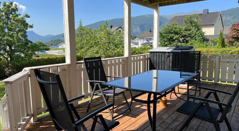 Nice big room with a balcony with a fjord view. Private parking in the front of the property