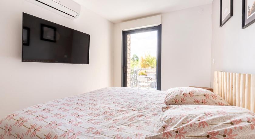 Air Conditioning, Balcony, Bath, Bath or Shower, Bathroom, City view, Cleaning products, Coffee machine, Dining table, Dishwasher, Electric kettle, Extra Long Beds (> 2 metres), Flat-screen TV, Garden view, Hairdryer, Heating, Kitchen, Kitchenette, Kitchenware, Linen, Microwave, Outdoor dining area, Outdoor furniture, Oven, Private flat in building, Refrigerator, Seating Area, Stovetop, Tea/Coffee Maker, Toaster, Towels, View, Wake Up Service/Alarm Clock, Wardrobe/Closet, Washing Machine