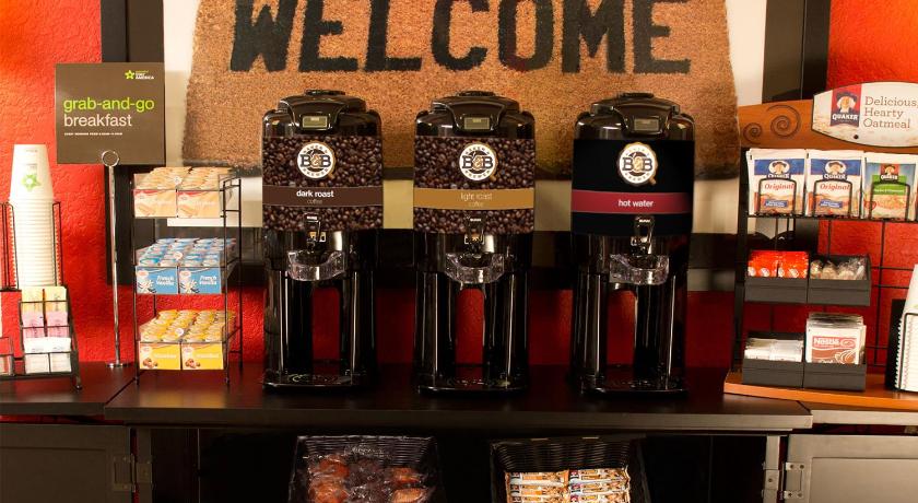 The grab-and-go breakfast served includes breakfast bars, muffins, hot cereal, coffee and tea only.