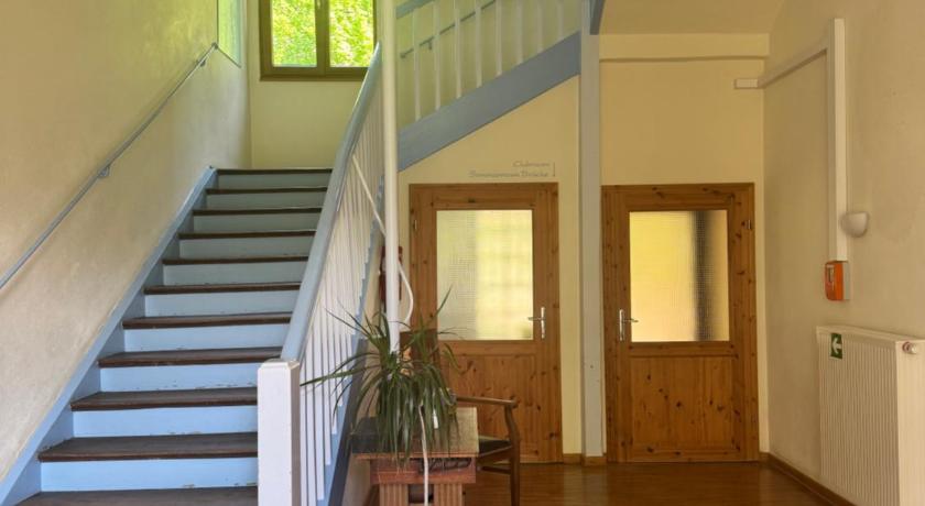 Nice location. Very quiet in the middle of nature with a beautiful view of a valley. A rustic but well run hotel. Good to relax after a long day at work. Interesting winding building with history.