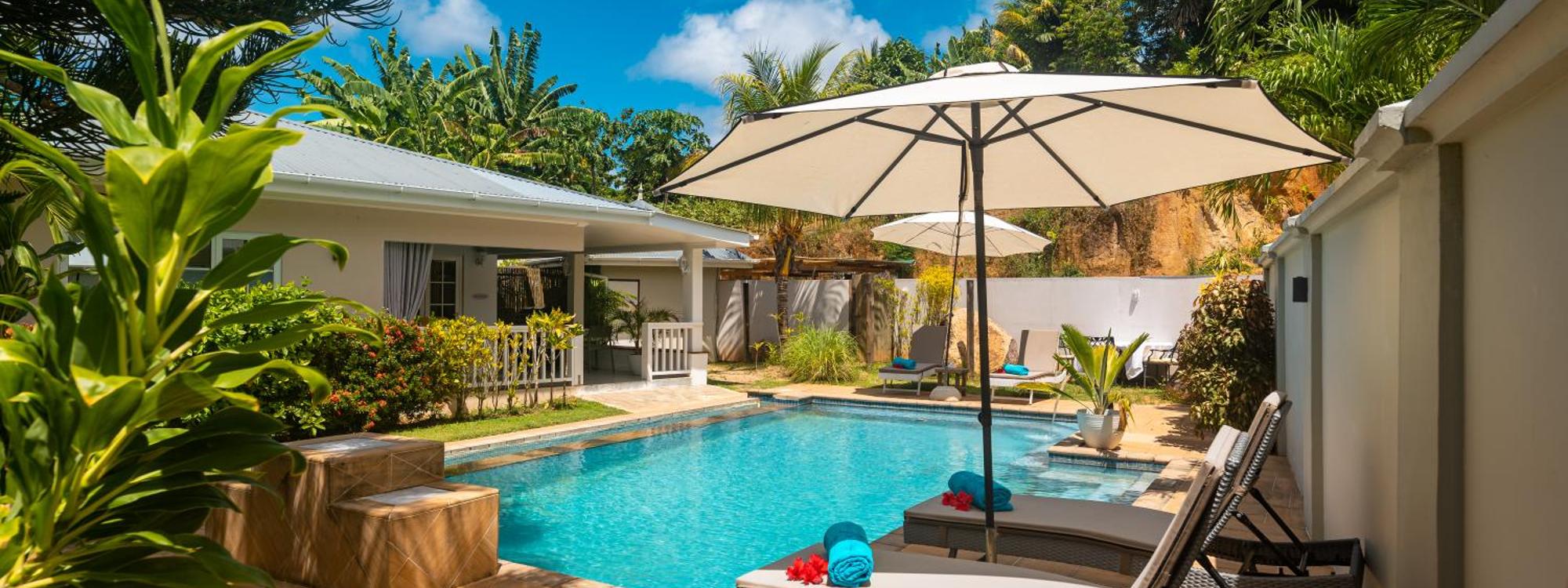 If you can split the group, keep in mind that using the hotel standard '2 guests per room' and getting 2 or more rooms will open up many more options of where you can stay. If you prefer to keep the group or family together or you just don't have the option of splitting the group or family then the Anse Royale 3 bedroom apartments or suites shown below are your answer!
