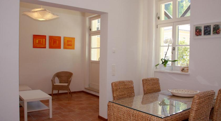 The location is just perfect both for hiking (the hike starts right from the door!!!) and easy walks around the city. Grocery stores and bakeries are in 15 - 20 minutes walks. We lived 3 days in the apartments on the 2nd floor with balcony and spent many hours after hikes just sitting on the balcony and enjoying the sounds of nature surrounding us. The interior design is simple, but nice. The furniture (bed, sofa, chairs) is comfortable. The windows views are amazing - you really feel the atmosphere of Bad Schandau. There is no extra fee for parking. The fee for pets is quite high, as everywhere in Germany, but we did manage to agree on discount.