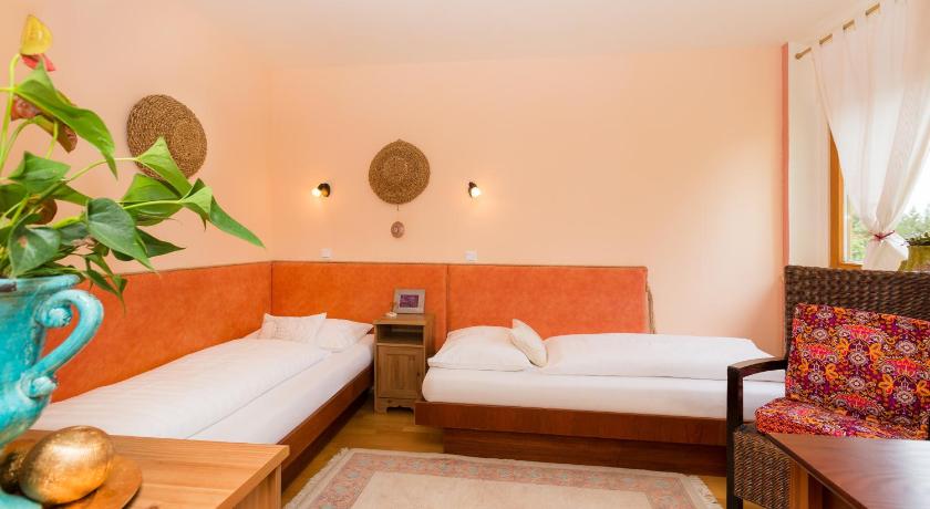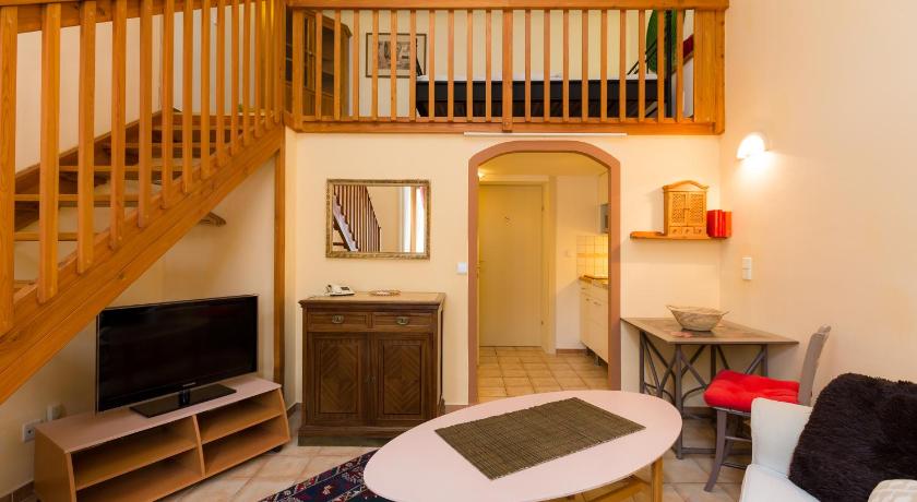 The location of the appartementhouse is perfect, just the opposit the Thermalbad on the other side of the road.. Silent eventhogh the main road is very close. Covered parking place in the garden! The appartment was fully equipped and clean. The beds were comfortable The lady at the reception desk was very-very friendly. We were satisfied with everything.