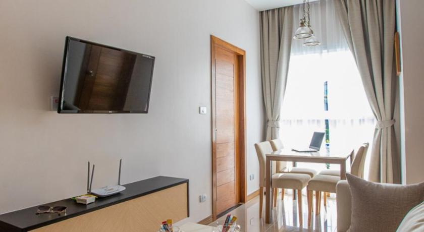 Air Conditioning, Balcony, Bath or Shower, Bathroom, Clothes rack, Dining area, Dining table, Electric kettle, Fan, Flat-screen TV, Free toiletries, Hairdryer, Iron, Ironing Facilities, Kitchen, Kitchenware, Linen, Microwave, Private entrance, Private flat in building, Refrigerator, Safety Deposit Box, Satellite Channels, Seating Area, Shower, Slippers, Sofa, Soundproofing, Stovetop, Tile/Marble floor, Toilet, Towels, TV, Upper floors accessible by stairs only, Wardrobe/Closet, Washing Machine