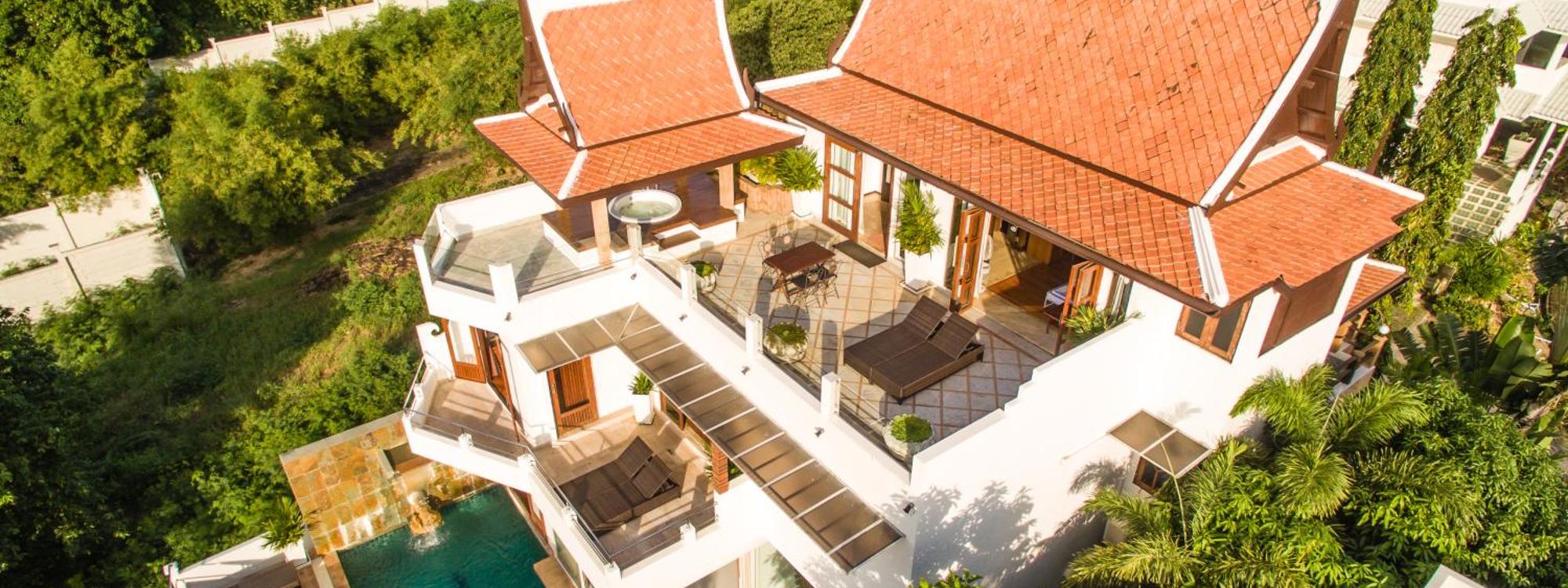 Overlooking Bangrak Bay, Bophut Hills and Big Buddha, Thai Villa Melitta Bangrak Bohput, Beach, Pool, SeaViews, 6-enSuite, Full Villa, Luxury, AAA Loc...more