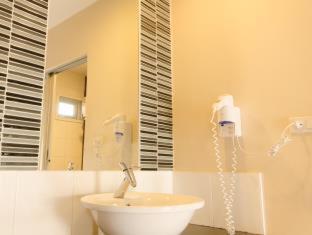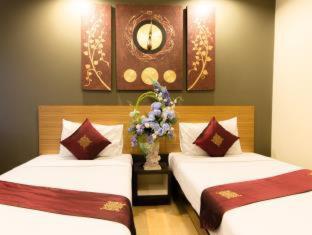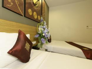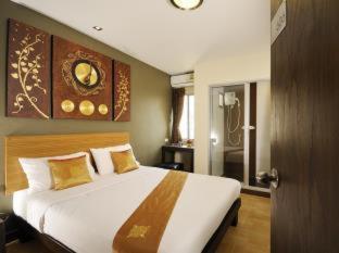 The room was clean, modern and attractive. I asked for a kettle on the first day and received one immediately. The staff were very good. The pool was fantastic after a long hot sightseeing day. They even provide stacks of beach towels in a rack by the pool. Everywhere was well decorated and looked after. It felt luxurious for the price. Great location for people watching and close to bus stop for airport and 8 min walk to nearest ferry pier phra Arthit.