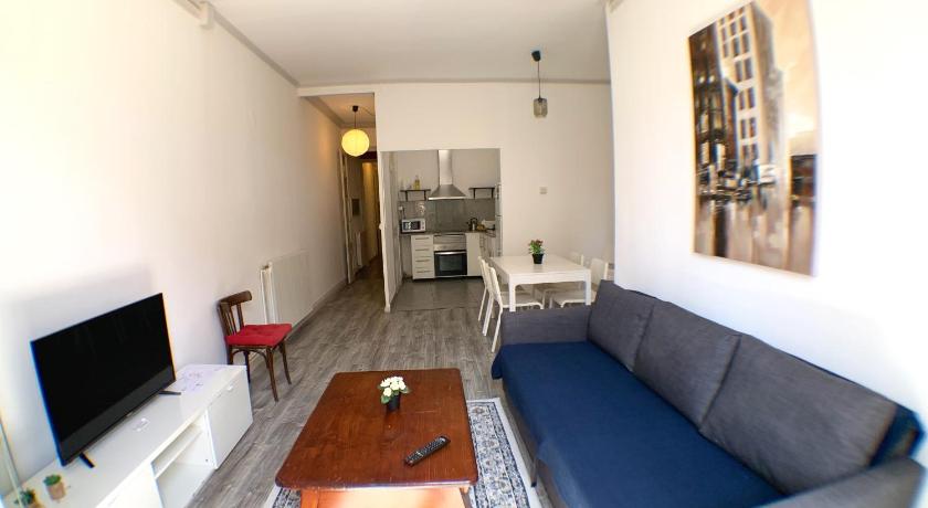 Great area, a lot of nice and cosy bars, very nice atmosphere, the appartment is located in an old house and has a very unigue atmosphere, it is a simple accomodation, not expensive, very near metro station, close to the centre. Very easy and quick communication with the owners.