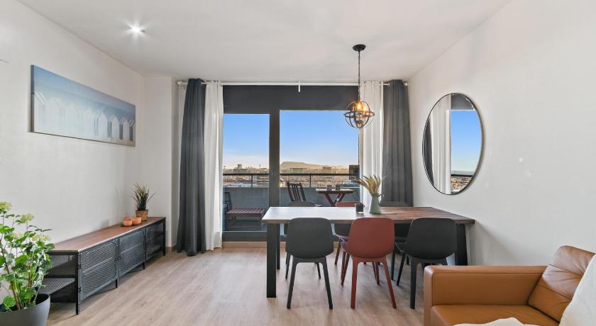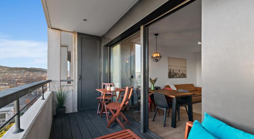 Air Conditioning, Balcony, Bath, Bath or Shower, Bathroom, Children's high chair, City view, Cleaning products, Clothes rack, Coffee machine, Dining area, Dining table, Dishwasher, Electric kettle, Flat-screen TV, Hairdryer, Hardwood/Parquet floors, Heating, Iron, Ironing Facilities, Kitchen, Kitchenware, Linen, Microwave, Oven, Private flat in building, Private Pool, Refrigerator, Seating Area, Sofa, Stovetop, Terrace, Toaster, Towels, TV, View, Wardrobe/Closet, Washing Machine