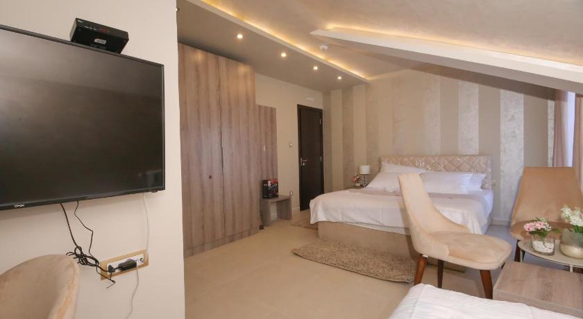 Additional Toilet, Air Conditioning, Balcony, Bath, Bathroom, Cable Channels, Clothes rack, Desk, Extra Long Beds (> 2 metres), Flat-screen TV, Free toiletries, Hairdryer, Heating, Hot Tub, Radio, Satellite Channels, Seating Area, Shower, Slippers, Spa Bath, Telephone, Terrace, Toilet, Towels, TV, View, Wardrobe/Closet