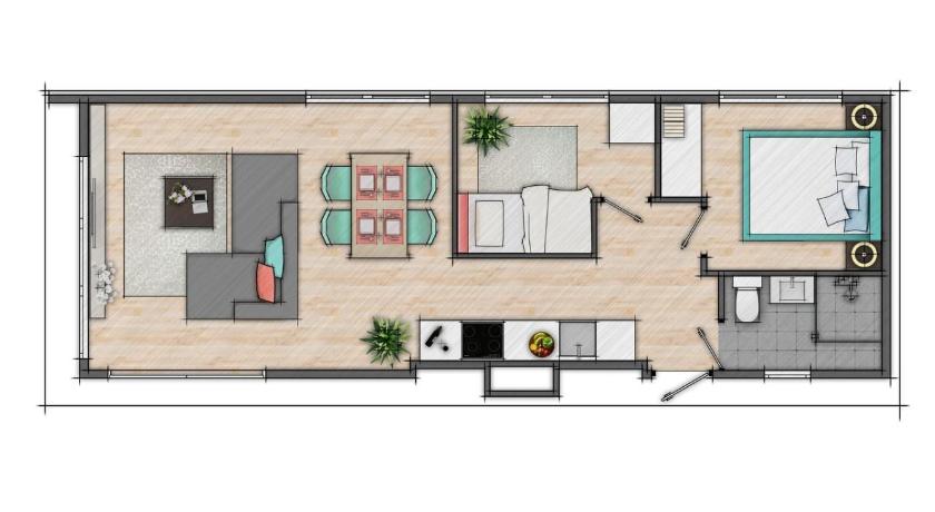 Air Conditioning, Bathroom, Coffee machine, Dishwasher, Heating, Kitchen, Microwave, Refrigerator, Terrace, Toaster, TV