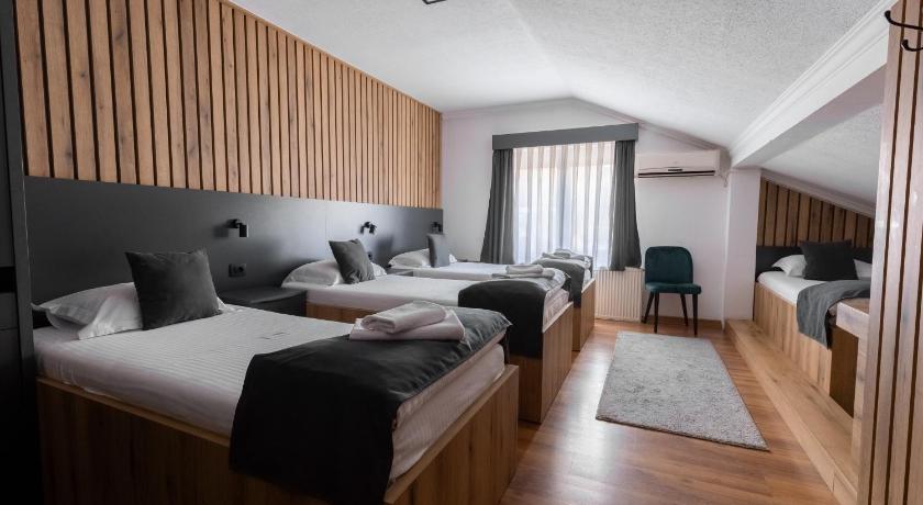 - Restaurant is right below the hotel, excellent meat dishes and a selection of desserts. The waiters are very helpful, always with a smile and a desire to please. - Relatively large rooms - Old rooms but modernly furnished - Room with air conditioning - There is a place to sit and a computer - There is a lot of storage space Breakfast omelets were excellent + Turkish coffee