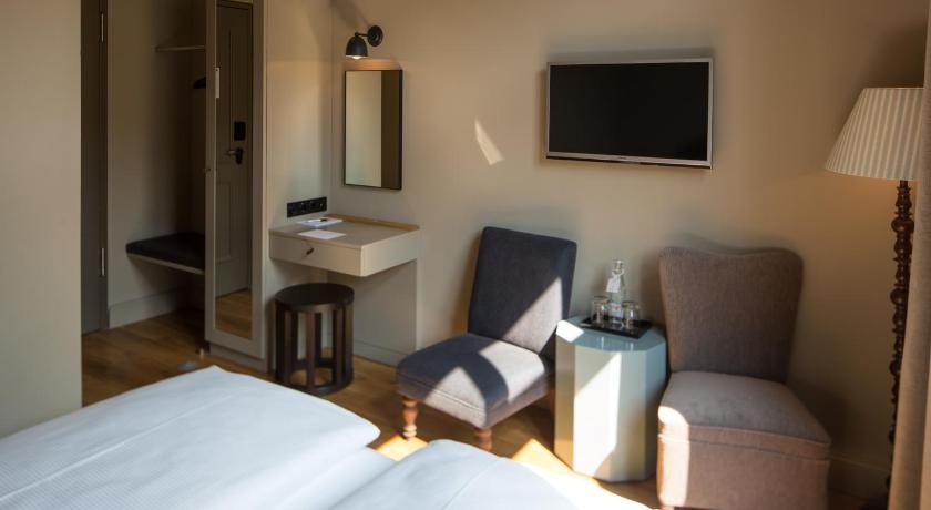 Friendly staff. Fab location. Bar area was nice and relaxing. Bar staff very nice - fab cocktails. The area around hotel has lots of bars, restaurants and shops. Tram and S Bahn very close by to get around the city. Great neighborhood. Solid choice of hotel!