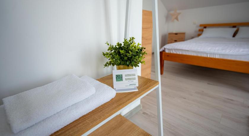 Very very clean Specious and modern rooms Bathrooms where super clean and equipped with all the toiletries necessary Specious patio area outside equipped with fridge and a sink Big barbecue Garden was clean and had a swing and a hammock Plenty room to park our cars The kitchen was super clean and all the kitchen items you will need(gas oven,microwave,sink,big fridge,lots of mugs and glasses and all the forks and spoons you will ever need),had a big tables enough for 12 persons. We where REALLY impressed by villa and everyone had an amazing time there,plus the host was super friendly and helpful as well(had a small gift for us when we arrived:some apple pie which was delicious and some tuica) DEFINITELY we will visit again and we would recommend the villa if you want an amazing accommodation.