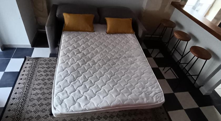 I loved everything about this place. It was decorated to a very nice taste and very good standards. Downstairs there was an open space with kitchen, sitting-dining room and a rest room. It also had a lovely court yard to eat outside. Upstairs, it had a magnificent huge bedroom, very nicely decorated with a shower room and a bed for children to sleep in. It was situated by the road in a small village. Close to the studio flat, there was a (bakery) that sold the most amazing bread, sandwiches, and pastries. Nearby we also found a restaurant that served the most delicious food, where we had an amazing dinner. We loved our stay so much! The host was very nice and accommodating. They also accept pets. Our dog loved walking in the court yard. I recommend this place 110 percent!