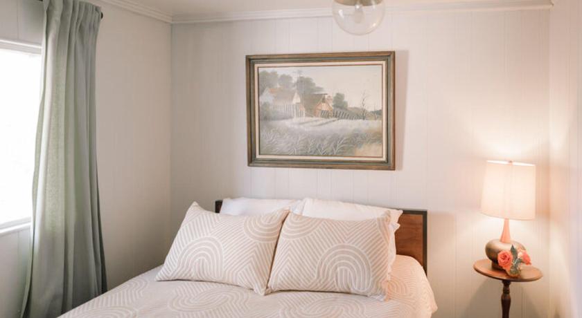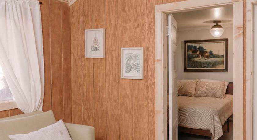 It is very quiet and you can only hear the sound of birds. There is a lovely deck in the back where you can enjoy a meal and tea while enjoy nature . Highly recommended.