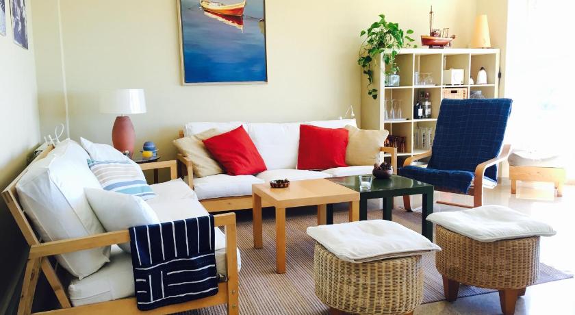 Air Conditioning, Balcony, Bath or Shower, Bathroom, Cleaning products, Clothes rack, Coffee machine, Dining table, Dishwasher, Electric kettle, Fireplace, Flat-screen TV, Hardwood/Parquet floors, Heating, Iron, Ironing Facilities, Kitchen, Kitchenware, Linen, Microwave, Outdoor furniture, Oven, Private flat in building, Refrigerator, Sea view, Seating Area, Shower, Sofa, Stovetop, Terrace, Toaster, Towels, TV, Upper floors accessible by lift, View, Washing Machine