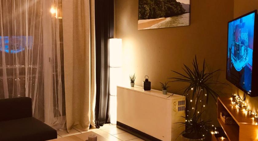 Bath or Shower, Bathroom, City view, Cleaning products, Coffee machine, Electric kettle, Flat-screen TV, Kitchen, Kitchenware, Linen, Microwave, Private flat in building, Refrigerator, Seating Area, Shower, Sofa, Toilet, Towels, TV, View