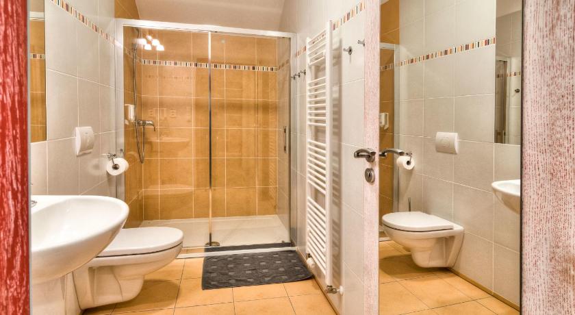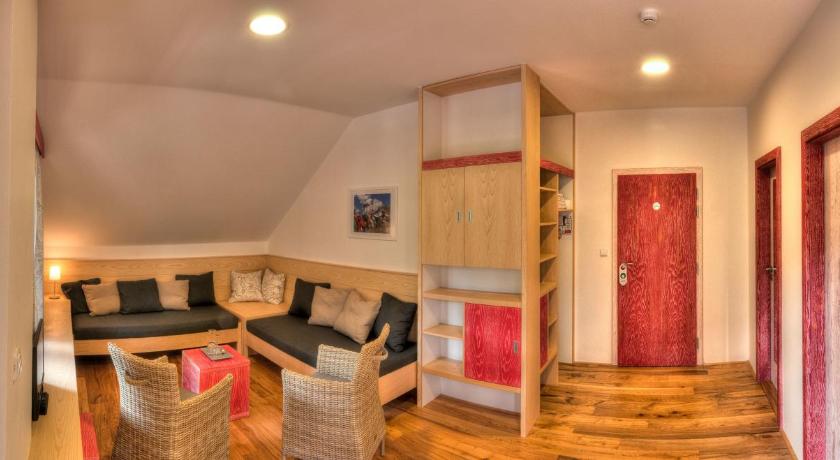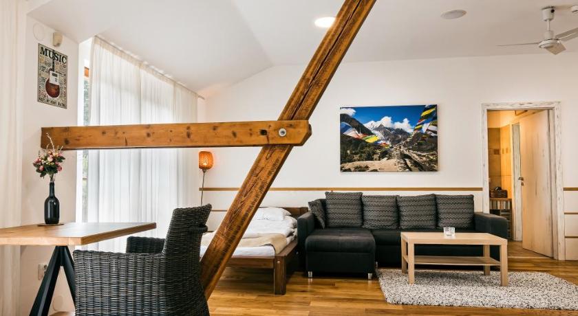 Breakfast was superb - everything that one could want. The bedroom / balcony and the en suit sitting room were excellent. They beds were very comfortable and the whole suit was well designed in a clean rustic style - which was reflected throughout the hotel. The bathroom and shower were very modern. The staff - from the reception to the waitress - could not have done more to makes our visit a pleasurable experience. To cap it all, I did not have to use my Czech phrase book- they both spoke very good English!