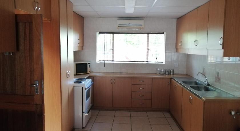 The property had both a front and back yard that is fenced of, so our dogs were excited about the space. Both cars could fit easily under the undercover parking that also have a security gate to lock. There is a children play station/ Klim Raam in the back where the children can safely play and there is a boma if weather permit braai outside. The house has 2 bedrooms and a sleeper couch in the braai room. There is an inside braai that work well. Extra chest freezer available and a nice size fridge/ freezer combination. The kitchen is well equipped. Our host provided us with braai wood.