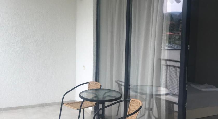 Amazing big hotel room. Great location close to the bus station, supermarkets, and ATMs. There are bathrobes for visitors and a huge balcony with a small table for lovely breakfasts with a garden view. The owner allowed to check in early.