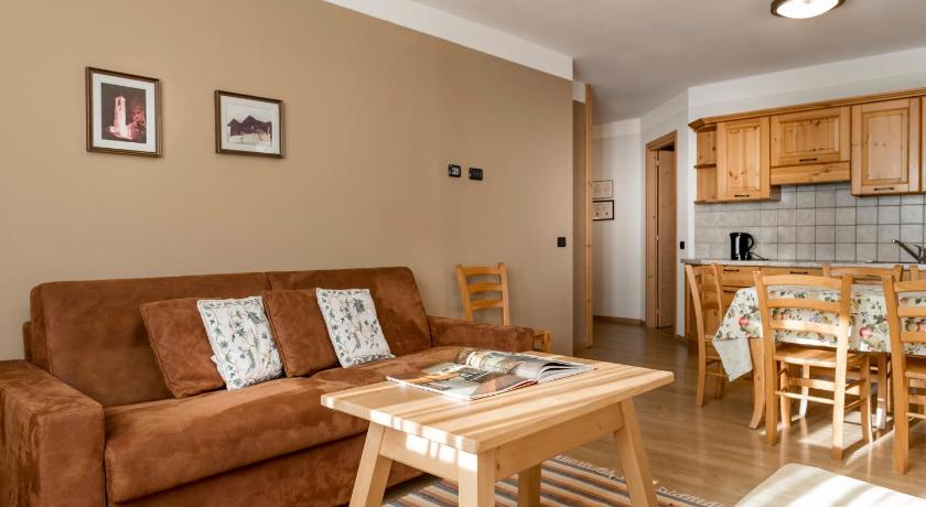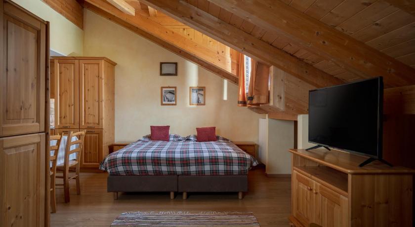 The Chalet is in a nice, quiet location, very near the super market, ice rink and a 15 min walk to town, 18min walk to the spa. There is a dairy farm next door, so the smell was sometime noticeable, but it didn't bother us at all. The apartments are spacious, warm and very clean. The kitchen is ok but could be more equipped for eating in, we missed a decent salad bowl. There are extendable tables and plenty of chairs and space around the table. The beds are very comfortable and they were able to supply us with an extra bed for our little son. The Chalet is slightly too far from the Bormio 2000 ski lift. It was a good 20 min walk with ski gears, that was challenging for the kids.
