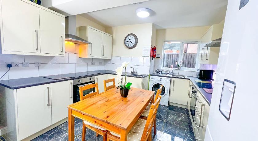 Additional bathroom, Additional Toilet, Cleaning products, Dining area, Dining table, Electric kettle, Entire unit located on ground floor, Flat-screen TV, Hairdryer, Heating, Iron, Ironing Facilities, Kitchen, Kitchenware, Linen, Microwave, Oven, Patio, Refrigerator, Seating Area, Shared Bathroom, Shower, Sofa, Tea/Coffee Maker, Toaster, Toilet, Towels, TV, Wardrobe/Closet, Washing Machine