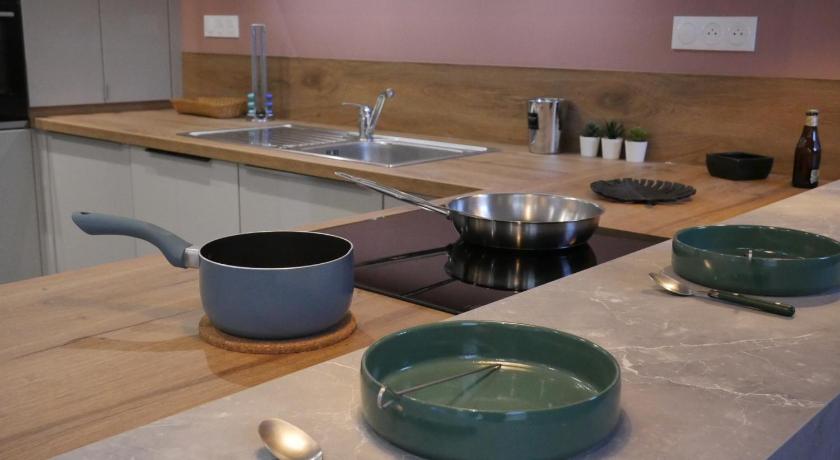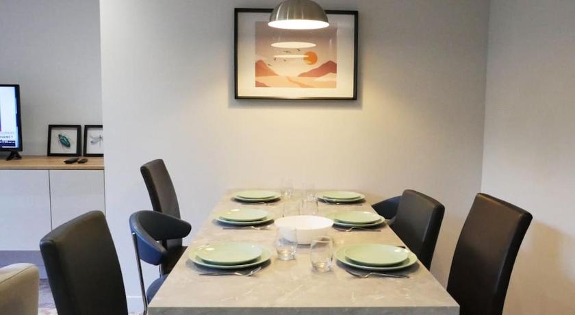 Dining table, Dishwasher, Electric kettle, Entire unit located on ground floor, Flat-screen TV, Kitchen, Kitchenware, Linen, Oven, Shower, Stovetop, Toilet, Towels