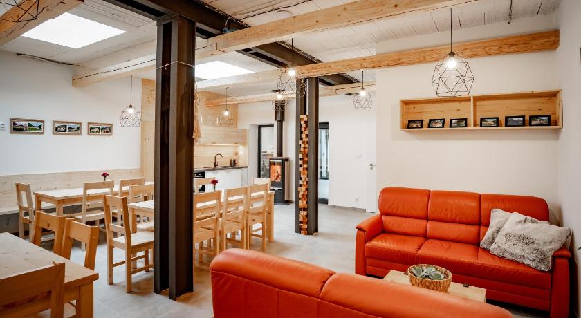 New, clean, nicely and tastefully decorated apartments, a large and well-equipped kitchen with a dining room, a playroom for children, friendly and helpful owners. Coffee machine - with good coffee! - for a small fee. We needed to leave our bikes in the garage - no problem. Parking on the premises. The room also has a small kitchenette with a microwave, kettle and basic kitchen utensils. We felt good there :-)