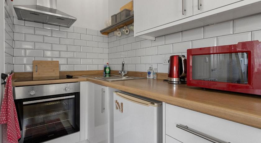 Bath, Bath or Shower, Bathroom, Children's high chair, Cleaning products, Clothes rack, Dining area, Dining table, Electric kettle, Flat-screen TV, Hairdryer, Hardwood/Parquet floors, Heating, Iron, Ironing Facilities, Kitchen, Kitchenware, Linen, Oven, Private entrance, Private flat in building, Refrigerator, Shower, Sofa, Stovetop, Toaster, Toilet, Towels, TV, Wardrobe/Closet