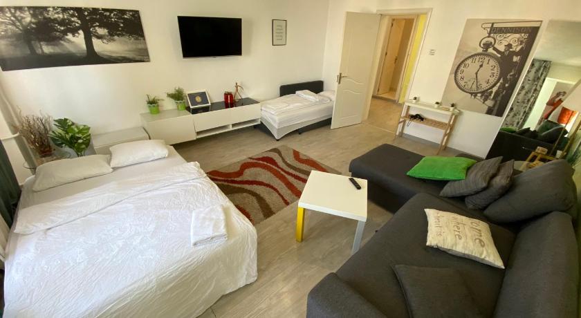 Great apartment, comfortable and well-equipped bedroom with a closet. Large living room with several sofa beds, fully equipped kitchen and a sweet balcony. The apartment is equipped with all the equipment for cooking and a pleasant stay. 1st floor with elevator. In a good and pleasant area of the city. There is a large supermarket a few steps from the apartment. The owner of the apartment is charming, gives a very warm and caring attitude. Easy to communicate with. We were a family, 4 adults and we enjoyed the apartment very much. Highly recommend.