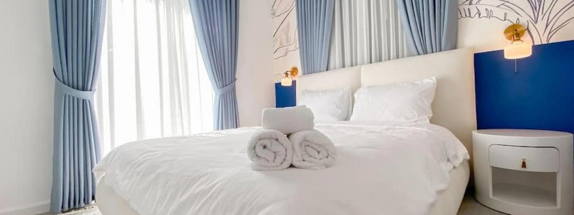 Check the room details for the extras that you get in large 3 bedroom apartments. Many 3 bedroom apartments have features such as private balconies, full kitchens and laundry facilities and separate lounge rooms or living areas. Also bedding is often flexible, often you can request your preferred bedding configuration at the time of booking.