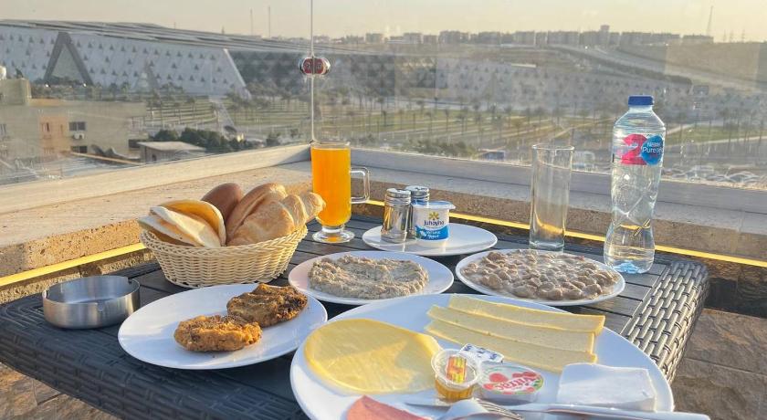 The location - just opposite the Grand Egyptian Museum. And the view from our balcony and the rooftop where we had our breakfasts with a nice view.