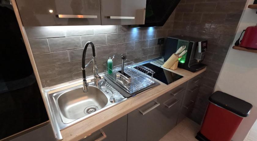 Supernice flat with a lovely terrace. Very well equipped kitchen with kind of luxury items. The whole flat with its interior felt well above ordinary standard. Very good desk and comfy chair for office work