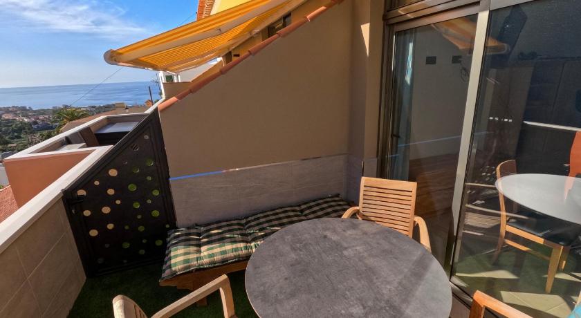 Air Conditioning, Balcony, Bath, Bath or Shower, Bathroom, Coffee machine, Dining table, Dishwasher, Electric kettle, Flat-screen TV, Free toiletries, Hairdryer, Heating, Iron, Ironing Facilities, Kitchen, Kitchenware, Linen, Mountain view, Outdoor dining area, Outdoor furniture, Oven, Refrigerator, Sea view, Shower, Soundproofing, Stovetop, Tea/Coffee Maker, Terrace, Tile/Marble floor, Toaster, Toilet, Towels, Upper floors accessible by stairs only, View, Wardrobe/Closet