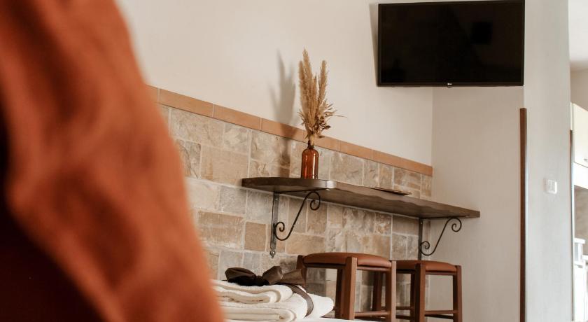 Structure is very welcoming and tidy. There is a private parking, a very cozy swimming pool and a well-kept garden. The room is small but full of all amenities you need. A little kitchen with fridge concurred to create a very familiar atmosphere with the little porch where we spent some time in the evening or before to go to sleep hearing only nature and some cicadas chatting. It was very relaxing, the young folks who supported us during the breakfast or during the few hours we spent in the swimming pool were so supportive and kind. Great experience!