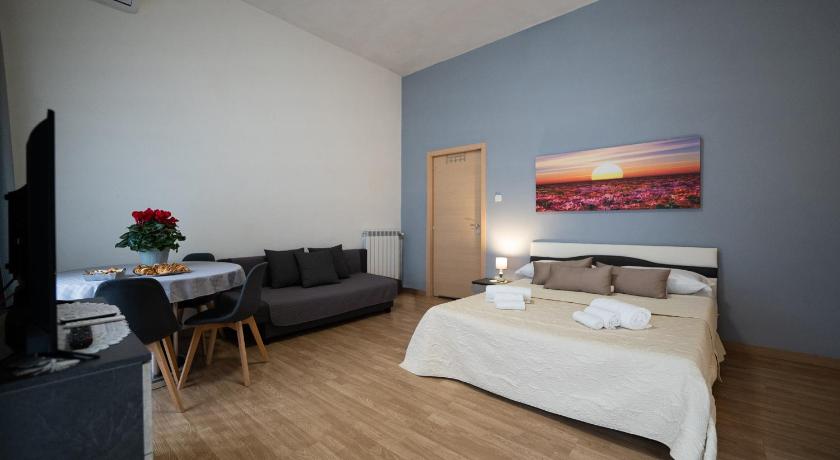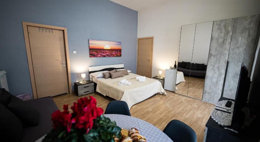 Perfect location, easy to find, close to the station, and the palace. The room was quite big )