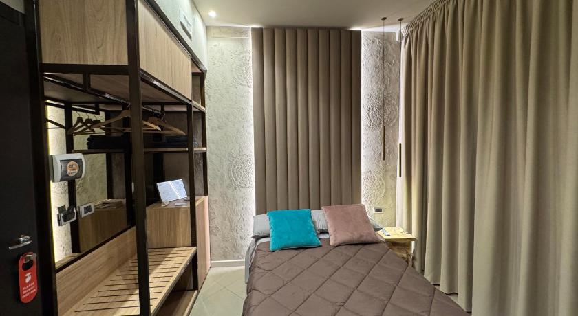 I’m so pleased I booked to stay here. The room was perfect for a solo traveller - really comfy, super clean and modern. The location is superb - it couldn’t be more central, easy to walk to from the train station with lots of amenities and landmarks on your doorstep. I felt very safe and welcome here and wished I could’ve stayed longer! The rooms are located within a residential block but are separated via a heavy, padded door. Everyone I met there was very friendly and the place was quiet, despite its central location. The owner, Carlo, couldn’t have been more helpful and the staff in the Tropicana bar were great. Carlo also arranged for my car transfer to the airport at a reasonable price and my driver was so lovely and interesting to talk to. If I ever return to Caserta (which I may well do as I really enjoyed it) then I would definitely stay here again.