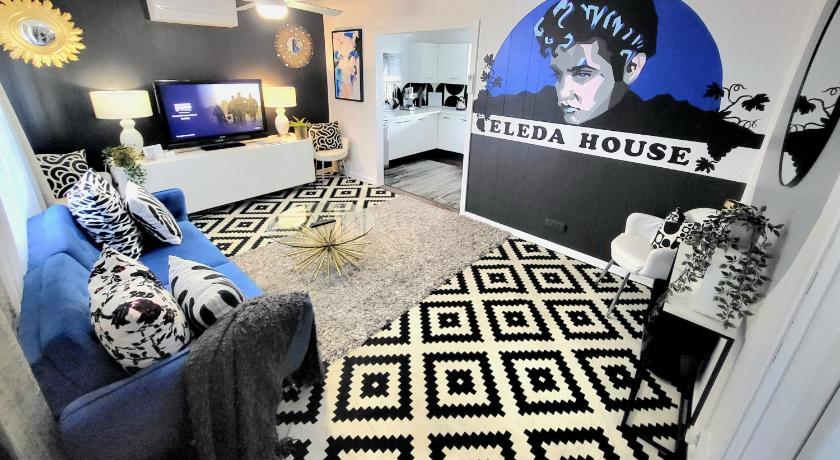 As you enter, the feel and themed interior design of the house is fun, bold, and inviting. It puts an immediate smile on your face when you stare at Elvis when you stroll in. Airconditioning kept all rooms cool. The deck and bbq facilities were perfect. Comfortable beds, great use of space everywhere.