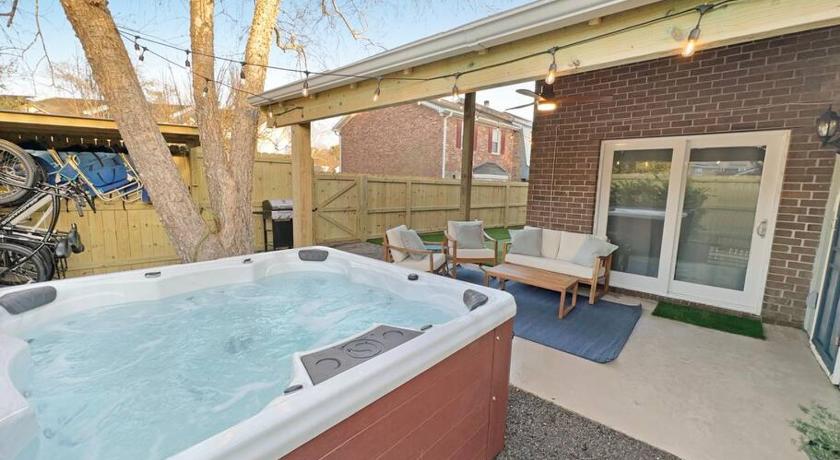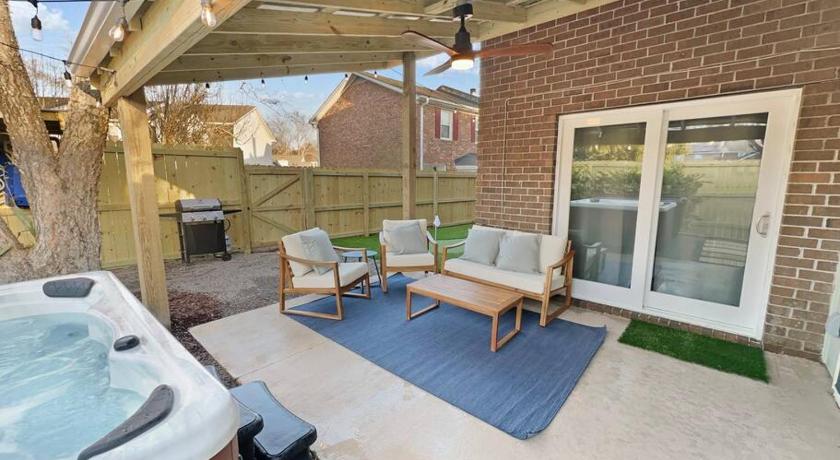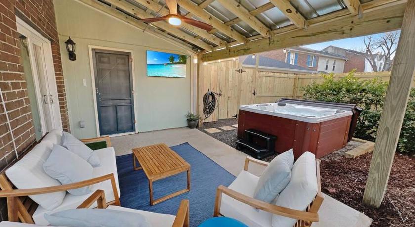 Additional Toilet, Air Conditioning, Bath, Bath or Shower, Cleaning products, Coffee machine, Dining area, Dining table, Dishwasher, Free toiletries, Hairdryer, Heating, Hot Tub, Iron, Kitchen, Kitchenware, Linen, Microwave, Outdoor furniture, Oven, Patio, Refrigerator, Seating Area, Shower, Sofa, Stovetop, Tea/Coffee Maker, Toaster, Toilet, Towels, Washing Machine