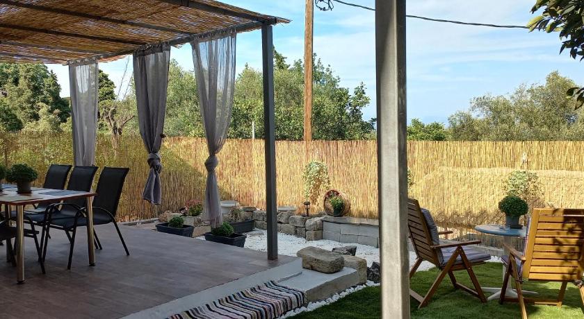 Air Conditioning, Balcony, Bath or Shower, Bathroom, Cleaning products, Clothes rack, Coffee machine, Detached, Dining table, Dishwasher, Electric kettle, Entire unit located on ground floor, Fan, Flat-screen TV, Garden view, Hairdryer, Heating, Iron, Kitchen, Kitchenware, Linen, Outdoor dining area, Outdoor furniture, Oven, Patio, Private entrance, Private flat in building, Refrigerator, Sea view, Seating Area, Shower, Sofa, Stovetop, Tea/Coffee Maker, Terrace, Tile/Marble floor, Toilet, Towels, TV, View, Wardrobe/Closet, Washing Machine