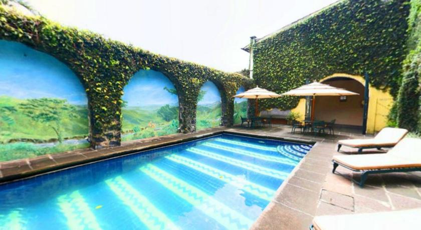 This is a beautiful colonial style hotel in the heart of Coatepec. What is remarkable is the property is very large and very green, there are lovely gardens, a pool and open air areas. The hotel is full of beautiful antiques and art which makes it feel like going back in time, and was a unique experience. The water pressure is very strong and hot in the shower, the rooms are large and comfortable. The staff is professional and they have a small pool! All in all a great place, and a great value.
