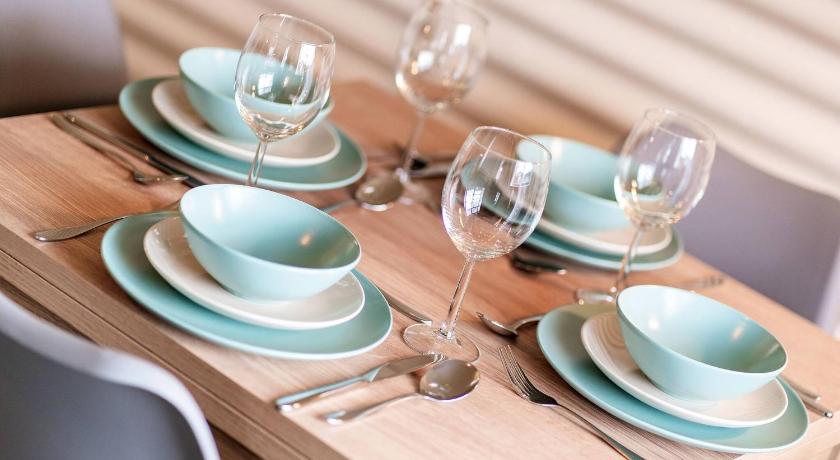 Bath or Shower, Bathroom, Cleaning products, Dining table, Electric kettle, Hairdryer, Heating, Iron, Ironing Facilities, Kitchen, Kitchenware, Microwave, Oven, Refrigerator, Shower, Stovetop, Toaster, Towels, TV, Wardrobe/Closet, Washing Machine