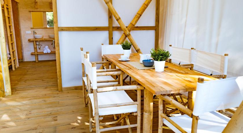 - We had the big tent pictured and was fantastic in every way. Spacious and clean with nice hot shower - The restaurant food is fantastic and the front of house staff were just as good. So very very impressed by the catering :)